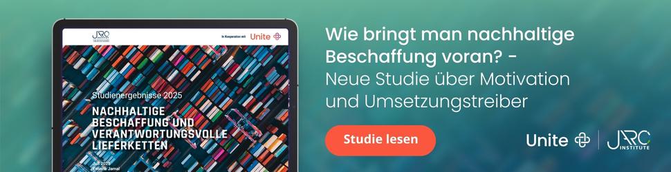 Hier können Sie die Studienergebnisse 2025 über die nachhaltige Beschaffung und verantwortungsvolle Lieferketten des JARO Institut für Nachhaltigkeit und Digitalisierung e.V. und Unite kostenlos downloaden.