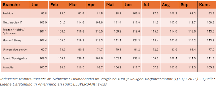 Mit über 10% Wachstum erfreulich entwickeln sich die Segmente Freizeit / Hobby / Spielwaren, Home & Living und Sport / Sportgeräte. Nach neun Monaten zeichnet sich Online für das Jahr 2025 das stärkste Plus seit dem Jahr 2021 ab.