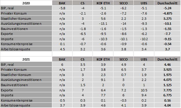 Nachstehend unsere Zusammenfassung der verschiedenen verfügbaren Prognosen 2021